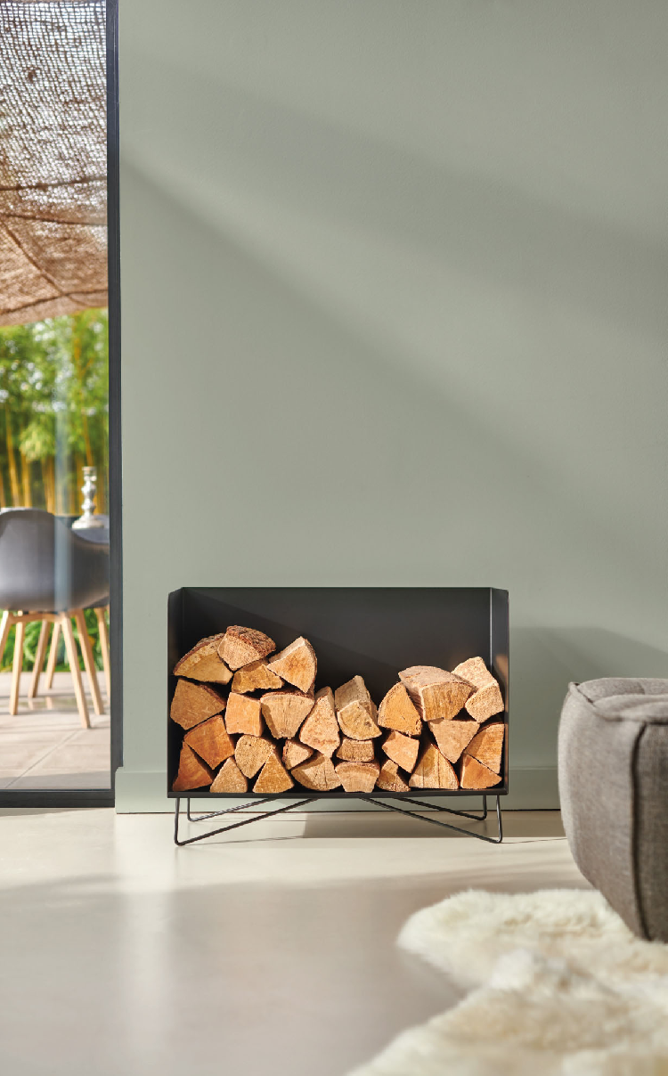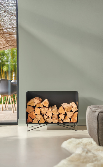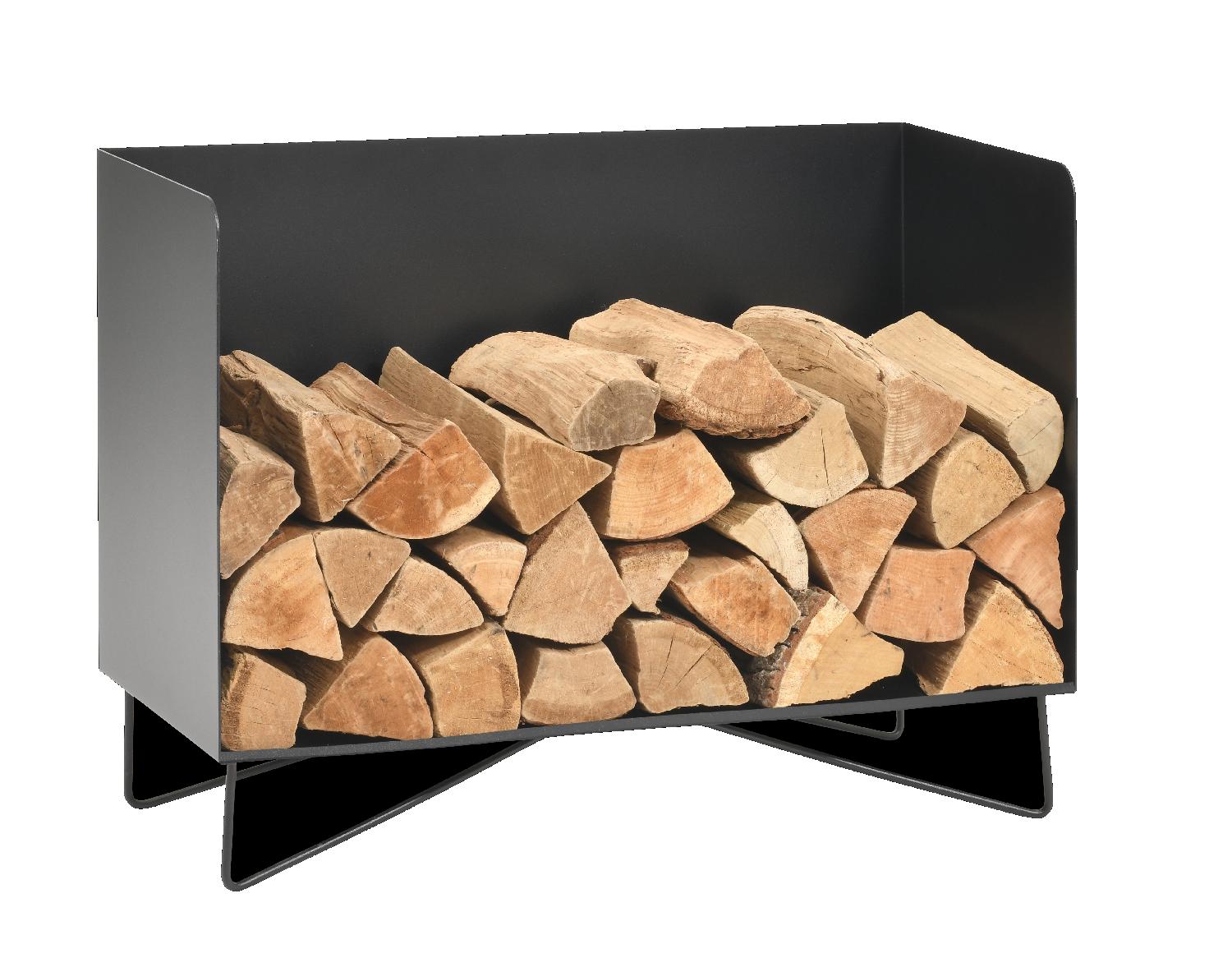 Mediano is a steel log-storage unit with a simple, horizontal shape, providing a very natural, traditional arrangement for your wood supply. Mediano looks like a log-storage unit, raised on wire legs to give it a light touch despite its large capacity (approx. 45 logs).