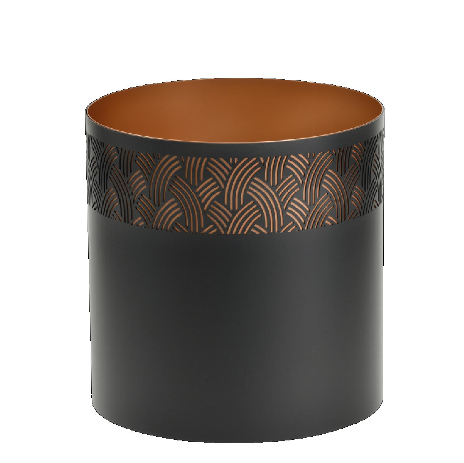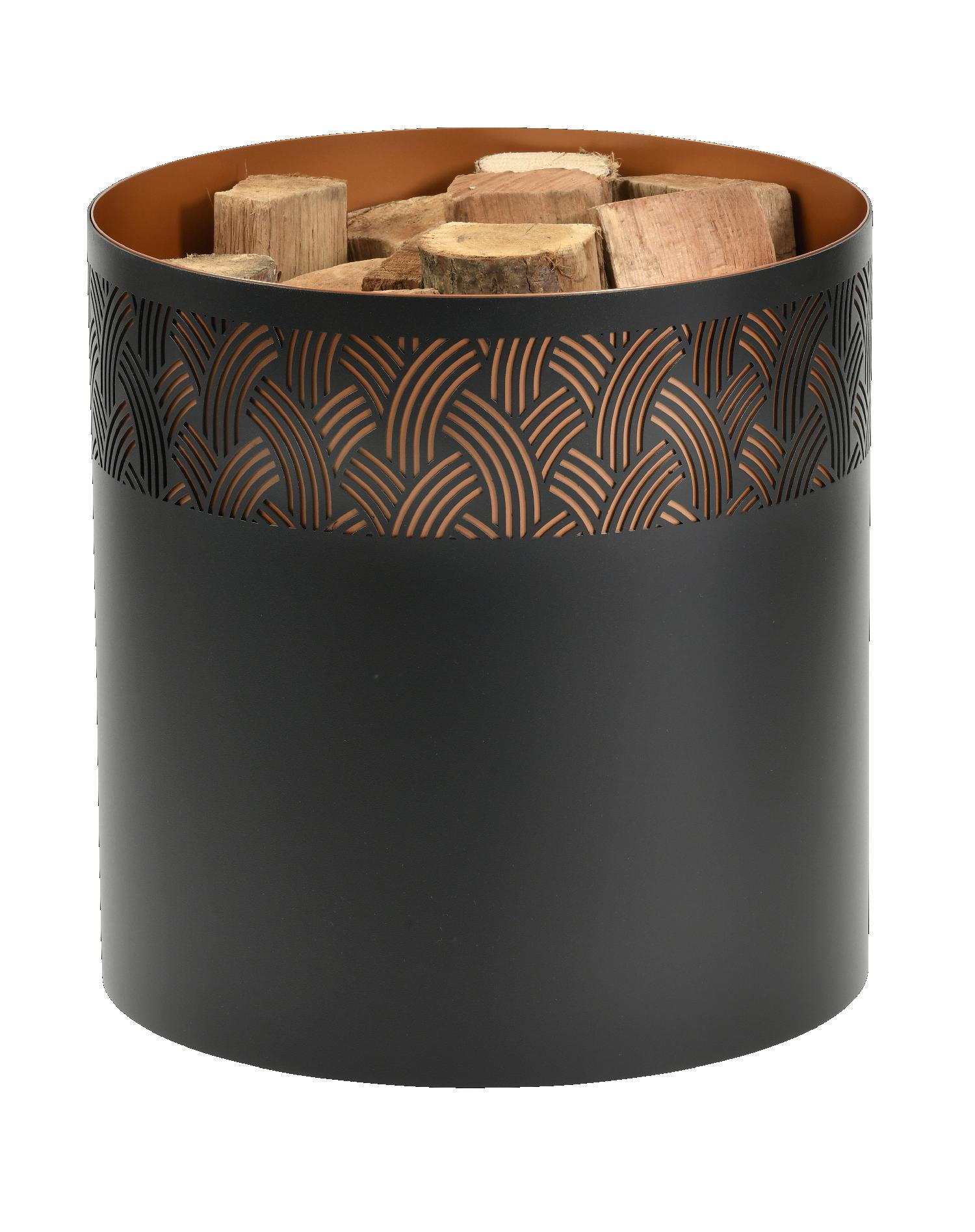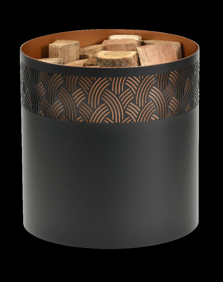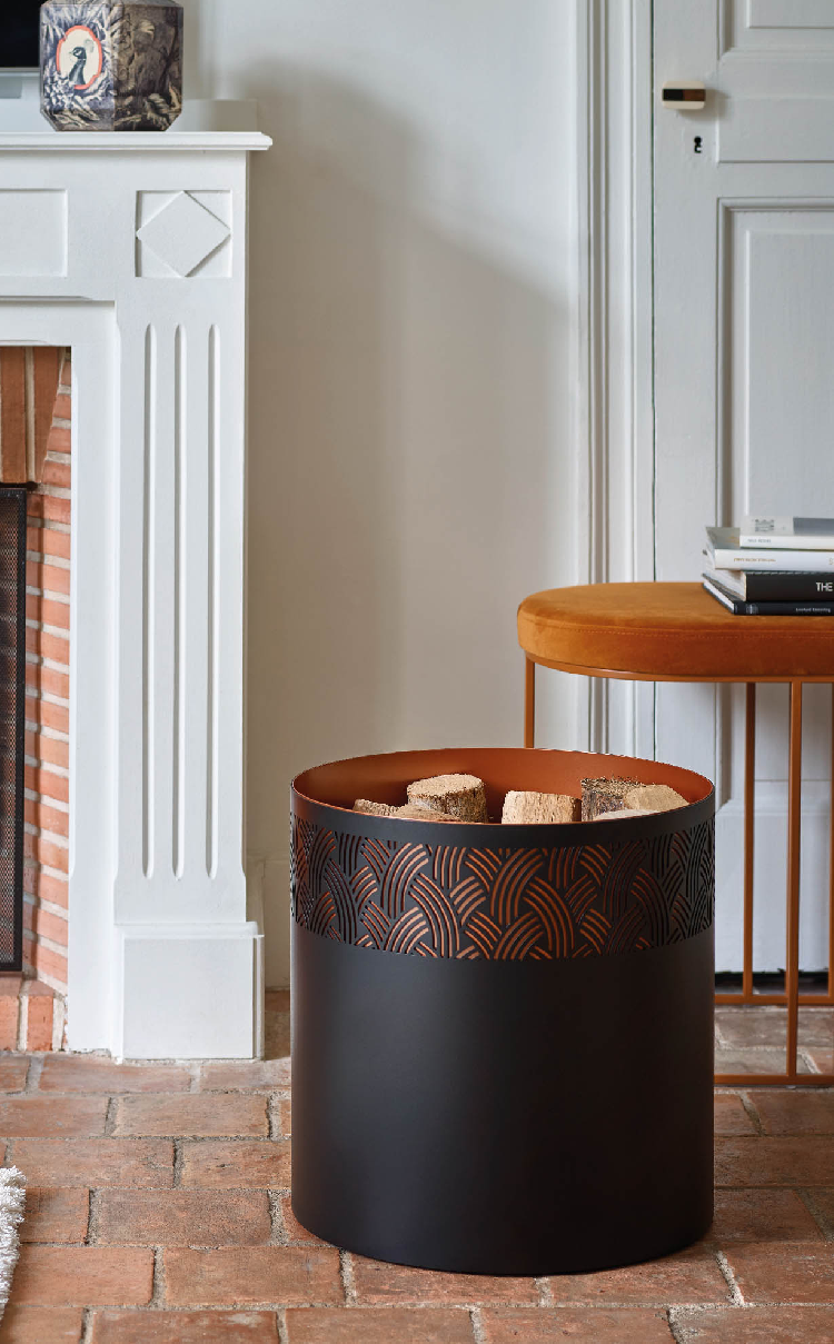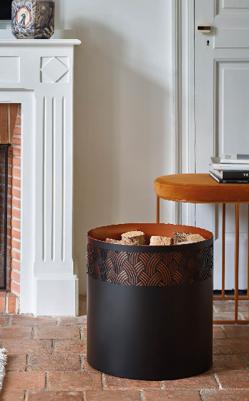 With its geometric motifs, inspired by the plant or animal world, the Art Deco movement shines through on this Elegence black steel log rack: embellished with a finely chiselled band revealing a beautiful coppery color (approx. 15 logs).