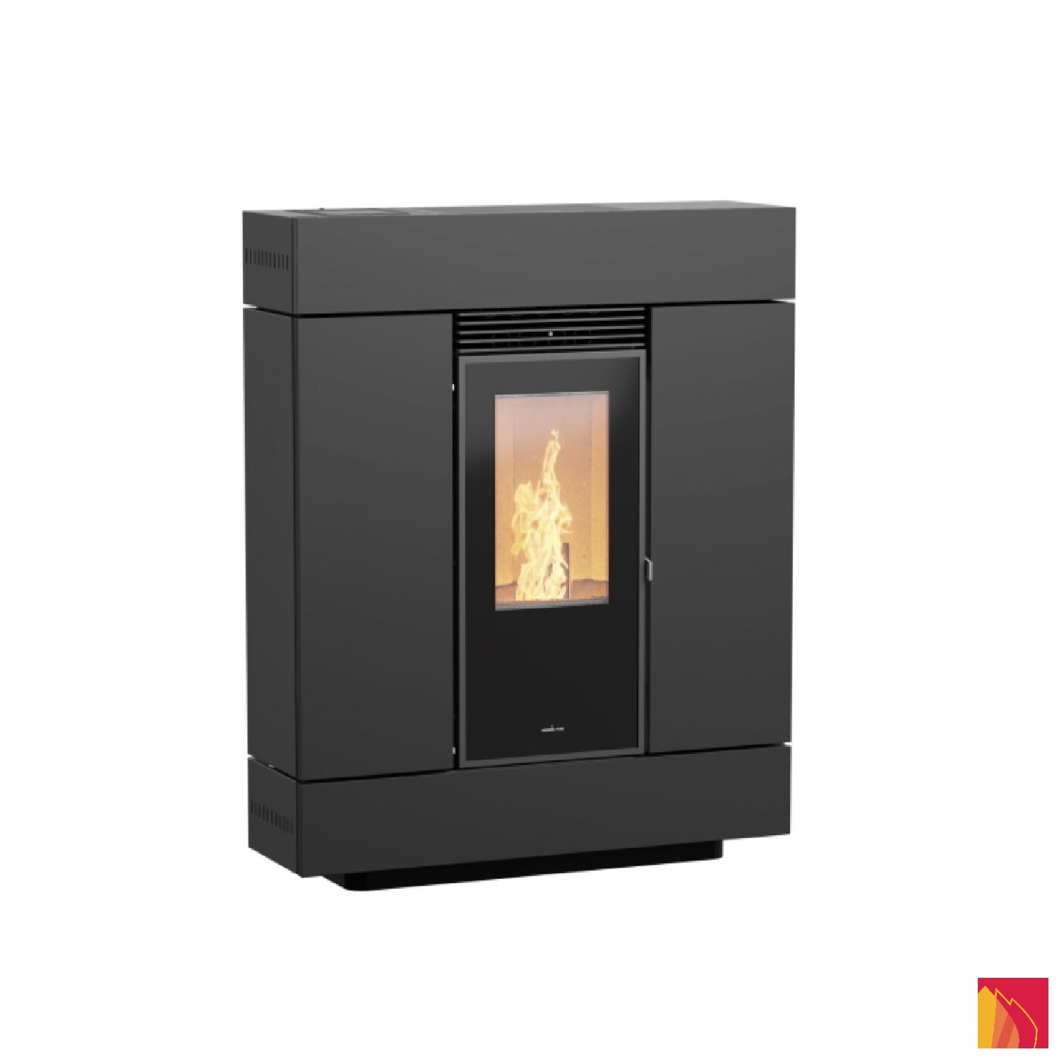 La estufa de pellets Diva Duo de la empresa italiana Klover es una pequeña maravilla con un diseño contemporáneo sobrio y puro. Su discreción sólo se ve igualada por su notable rendimiento térmico. Será discreto y se adaptará a cualquier entorno. Con su escasa profundidad, sólo 27 centímetros, la estufa de pellets Diva Duo no interferirá en la distribución de sus habitaciones. El tubo de salida puede ser visible o no dependiendo de la configuración de su sala de estar. Equipada con toda la tecnología más avanzada, también es posible canalizar una salida de aire caliente en la versión Diva Duo Multi Air. Gracias a su superficie de cristal, la estufa de pellets Diva Duo permite disfrutar del placer de la llama. La estufa se puede controlar a distancia y está equipada con el sistema de autolimpieza GAS para un confort inigualable del usuario.