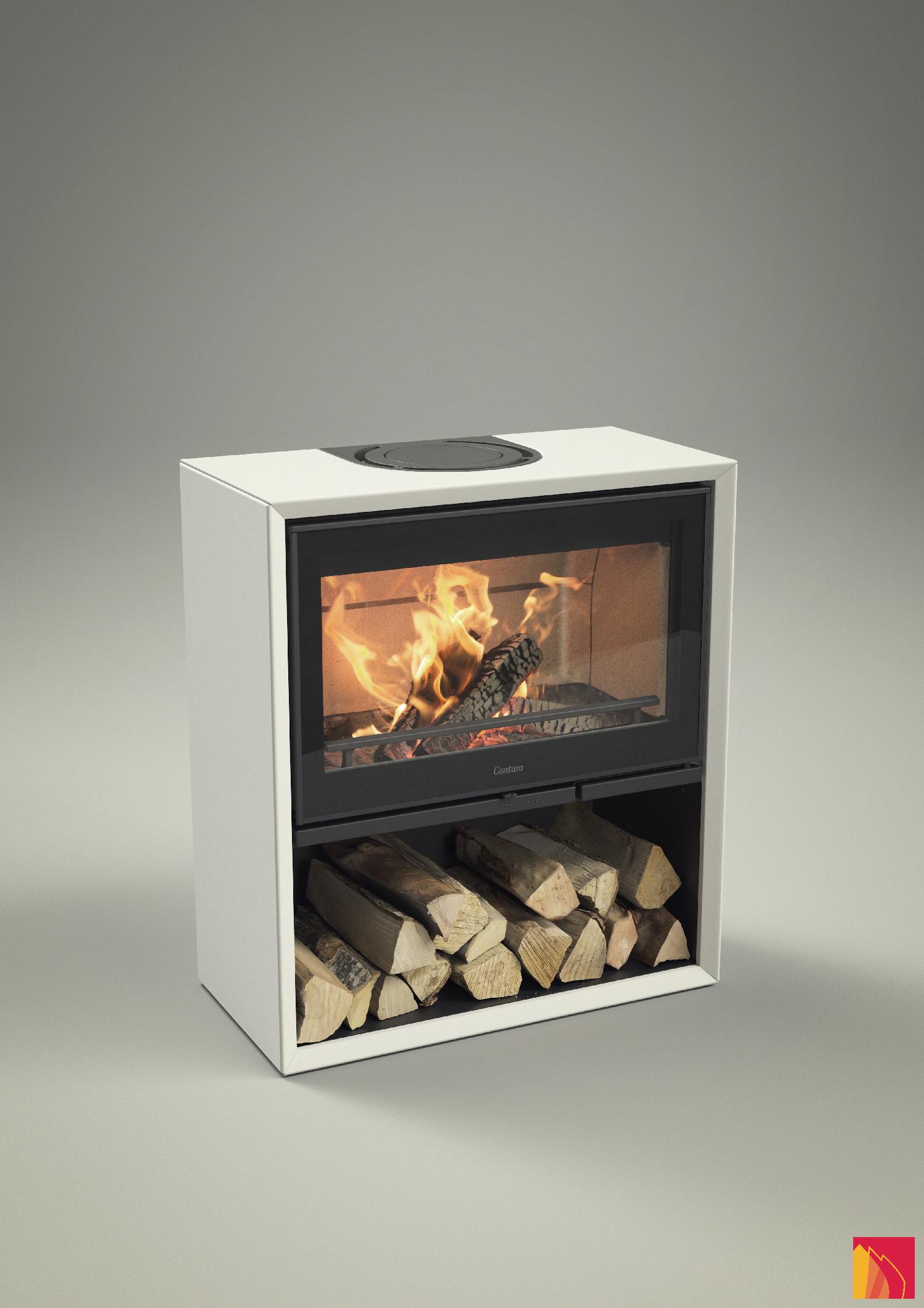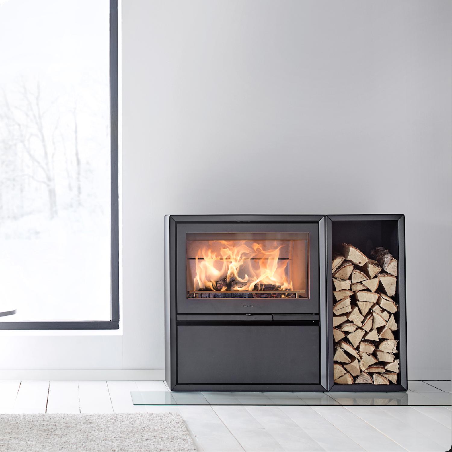 Le poêle à bois Contura 310 offre un rendement de 77% pour une puissance de 7 Kw. Il développe une belle capacité de chauffe sur une surface d'environ 120 m². La partie inférieure, pensée pour un stockage optimal des bûches de bois, est aussi audacieuse que sécurisée.