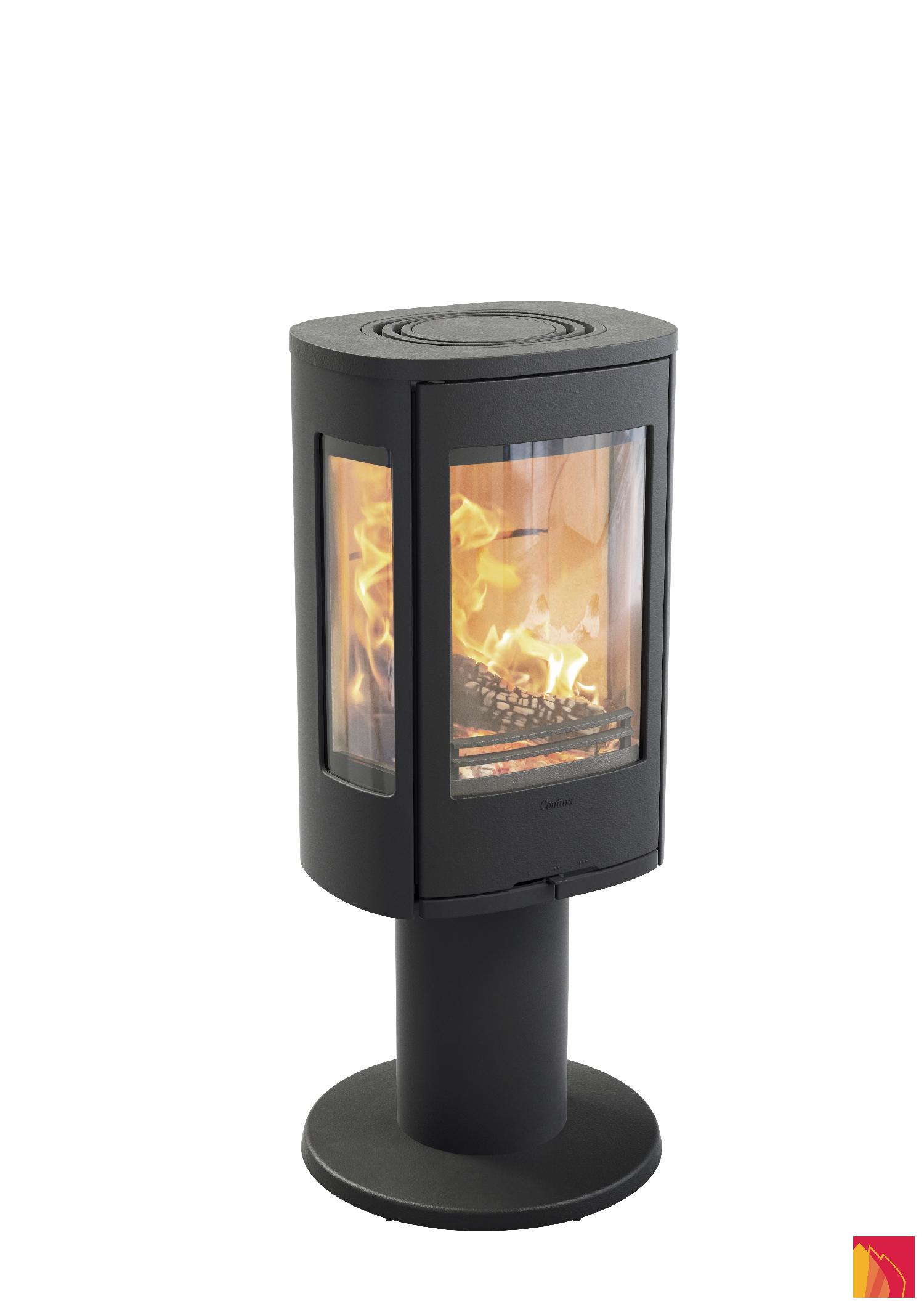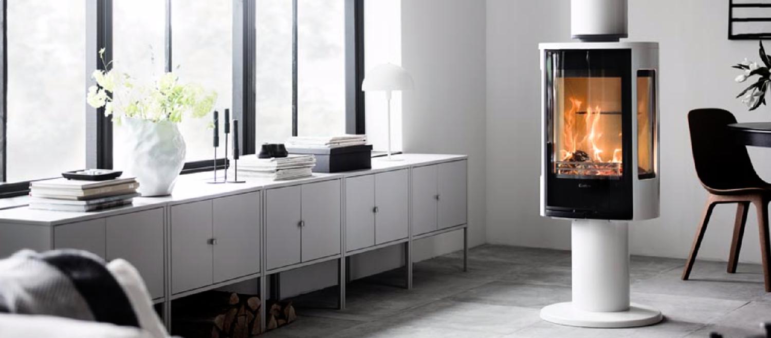 Perdre ses yeux dans les flammes virevoltantes d'un feu de bois où que vous soyez dans le pièce est un luxe que peu de gens connaissent. C'est des ateliers du suédois Contura que sort directement ce petit poêle compact, pivotant et vitré sur trois faces. Le 886, au design très moderne, se glissera dans tous les recoins, contre tous les pans de murs et même au centre de toutes les pièces.