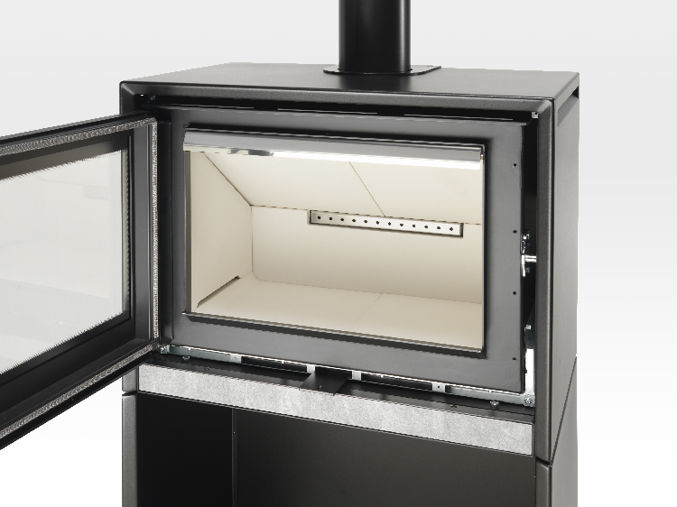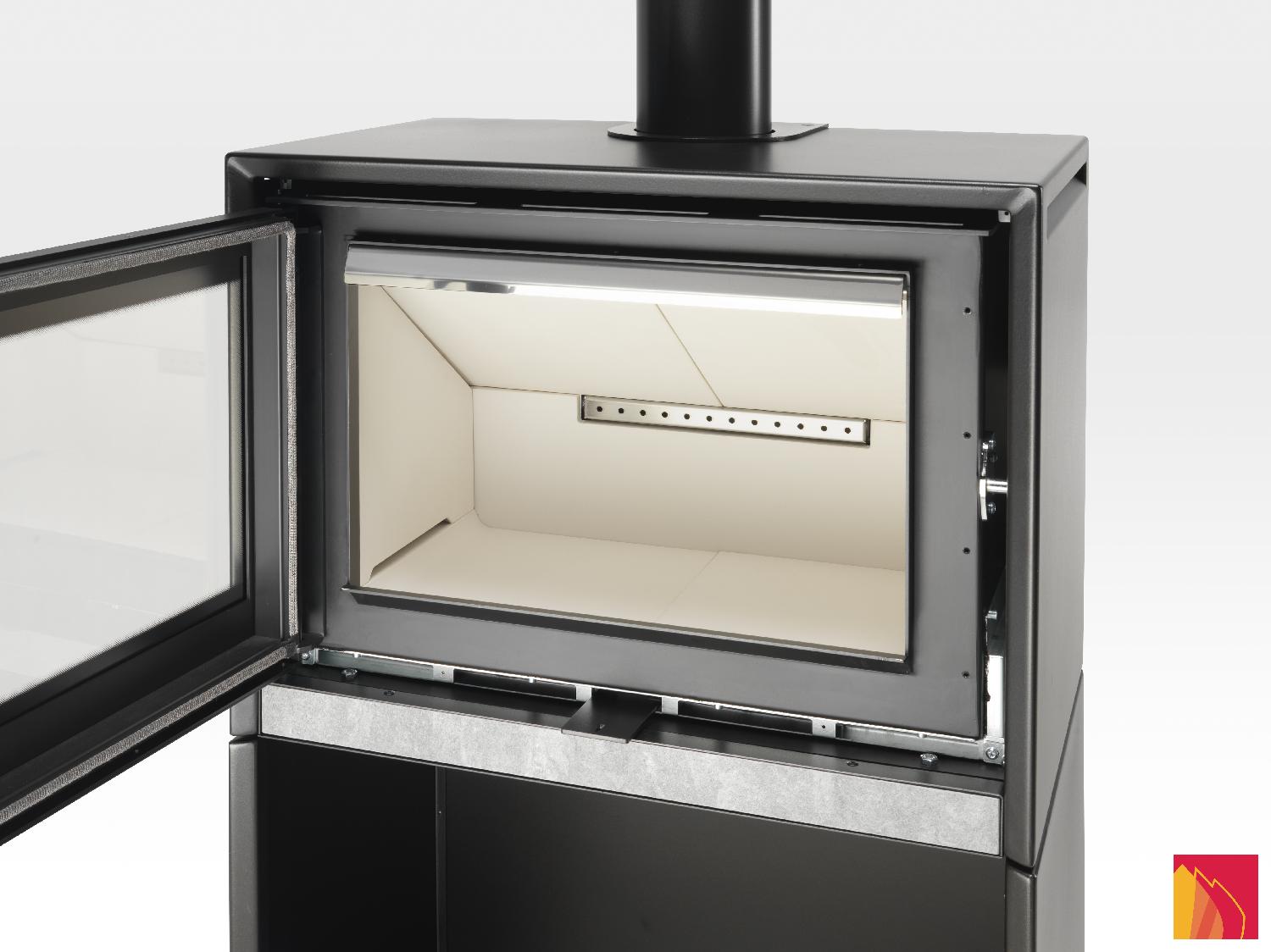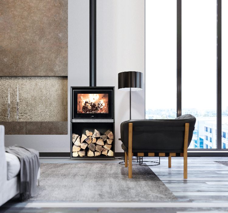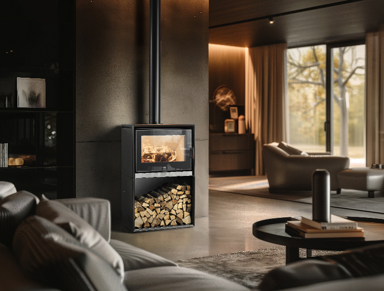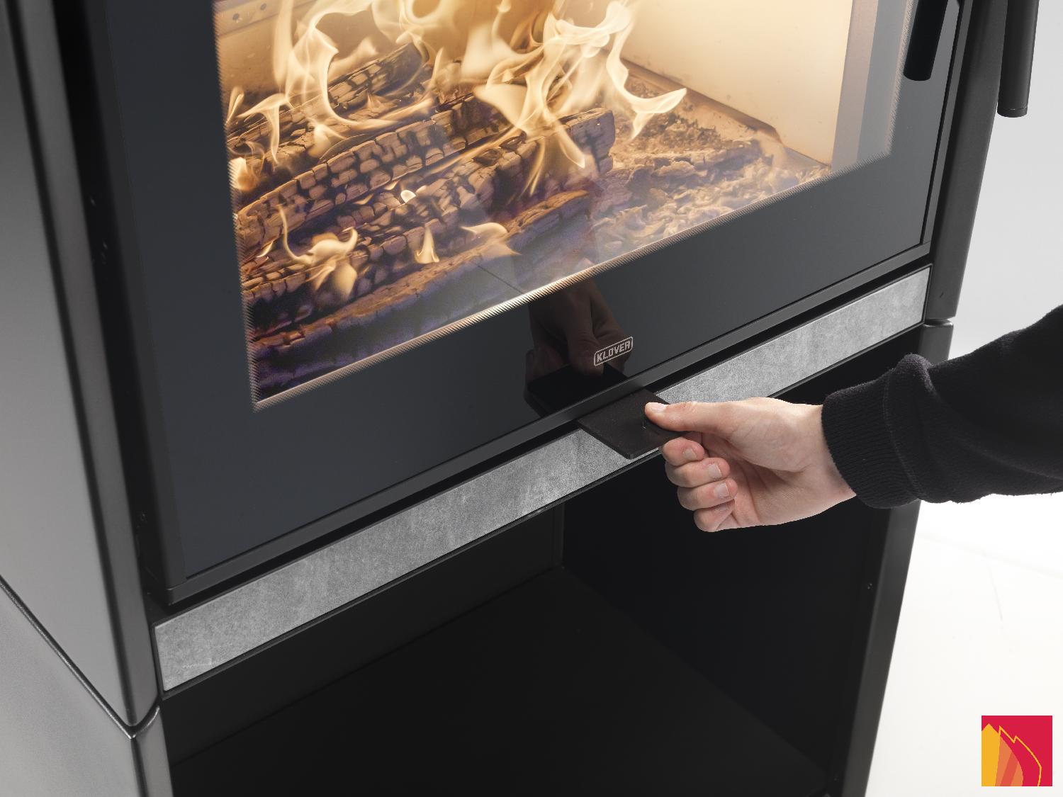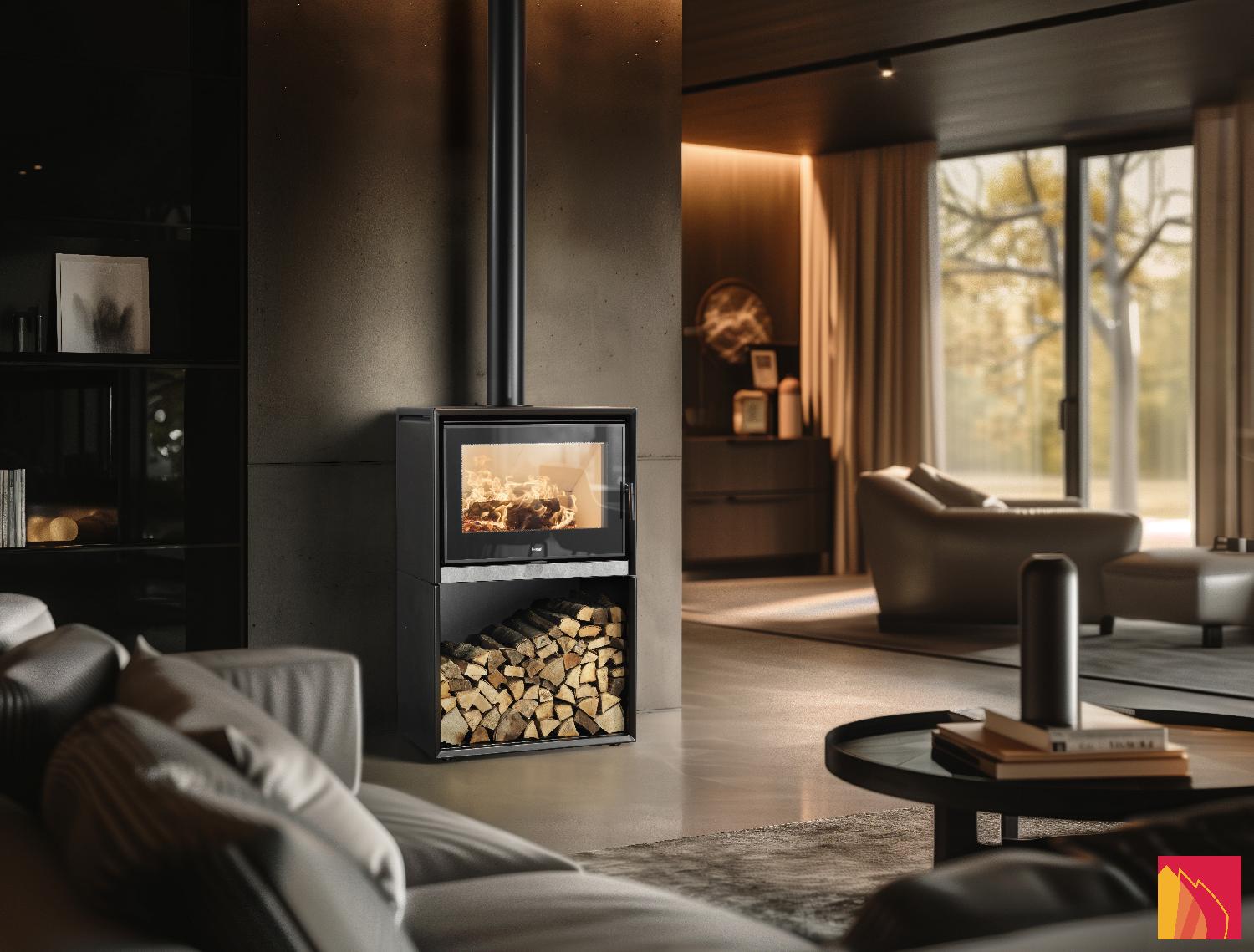 L'autre caractéristique pratique de cette poêle à bois Klover est son espace de stockage pour le bois situé en dessous du foyer. Cela signifie que vous pouvez garder une réserve de bûches à portée de main, ce qui facilite l'alimentation du feu sans avoir à faire de nombreux allers-retours pour chercher du bois.