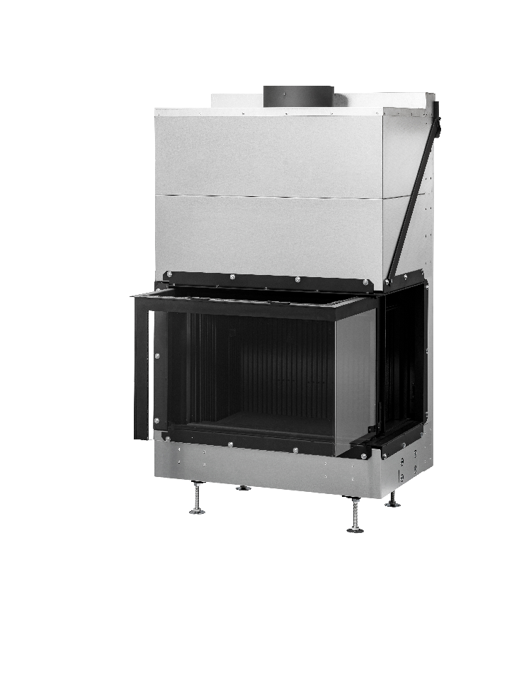 • Porte relevable sans cadre : accès direct et pratique au foyer, facilité de nettoyage, design contemporain.