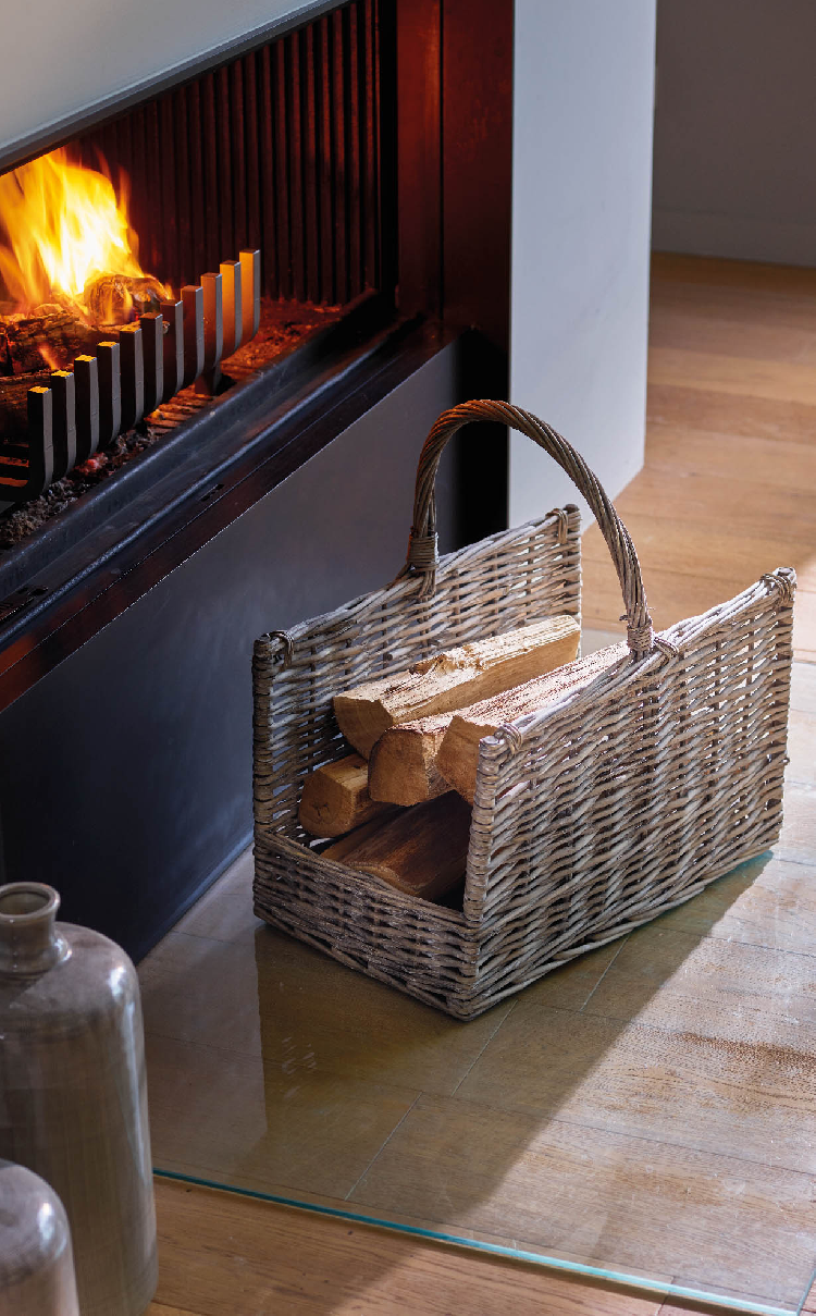 Noveo est idéal pour transporter vos bûches et les stocker auprès de votre appareil de chauffage au bois. En osier gris tressé à la main, vous aimerez son style très champêtre (12 bûches environ).