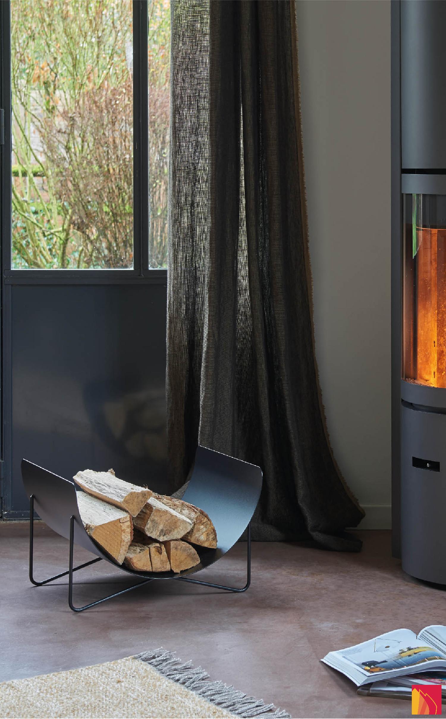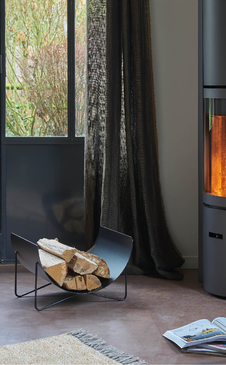 Ce best-seller de la gamme Dixneuf en acier noir trouve sa place en toute sobriété et en toute discrétion à côté de votre poêle ou de votre cheminée (18 bûches environ).