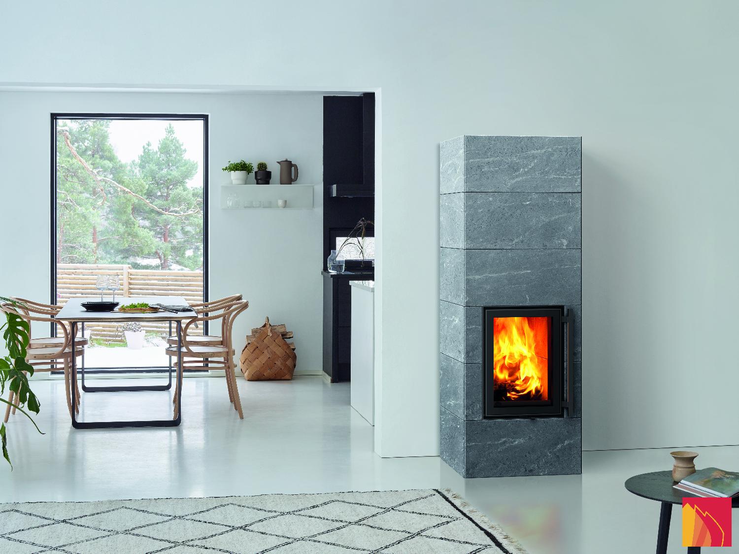La version plus étroite Koli S accumule la chaleur sur la masse en stéatite entourant la porte et située au-dessus de celle-ci.