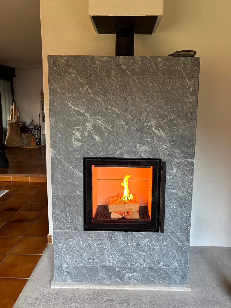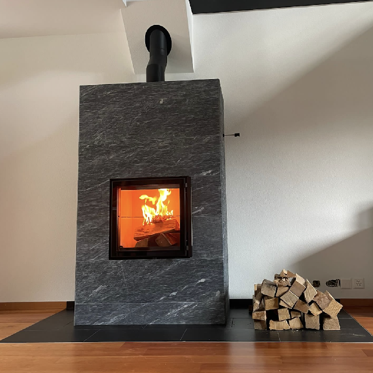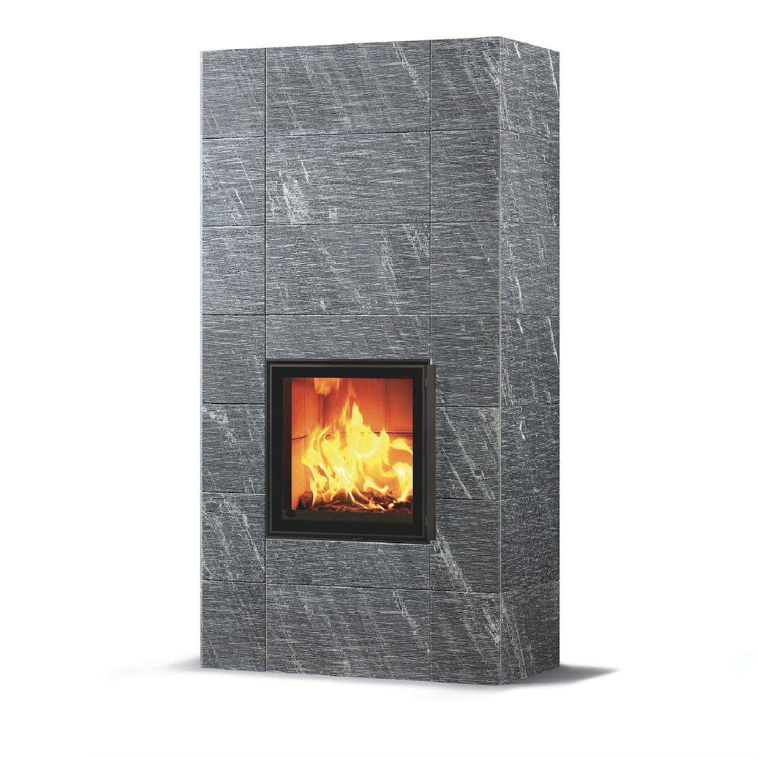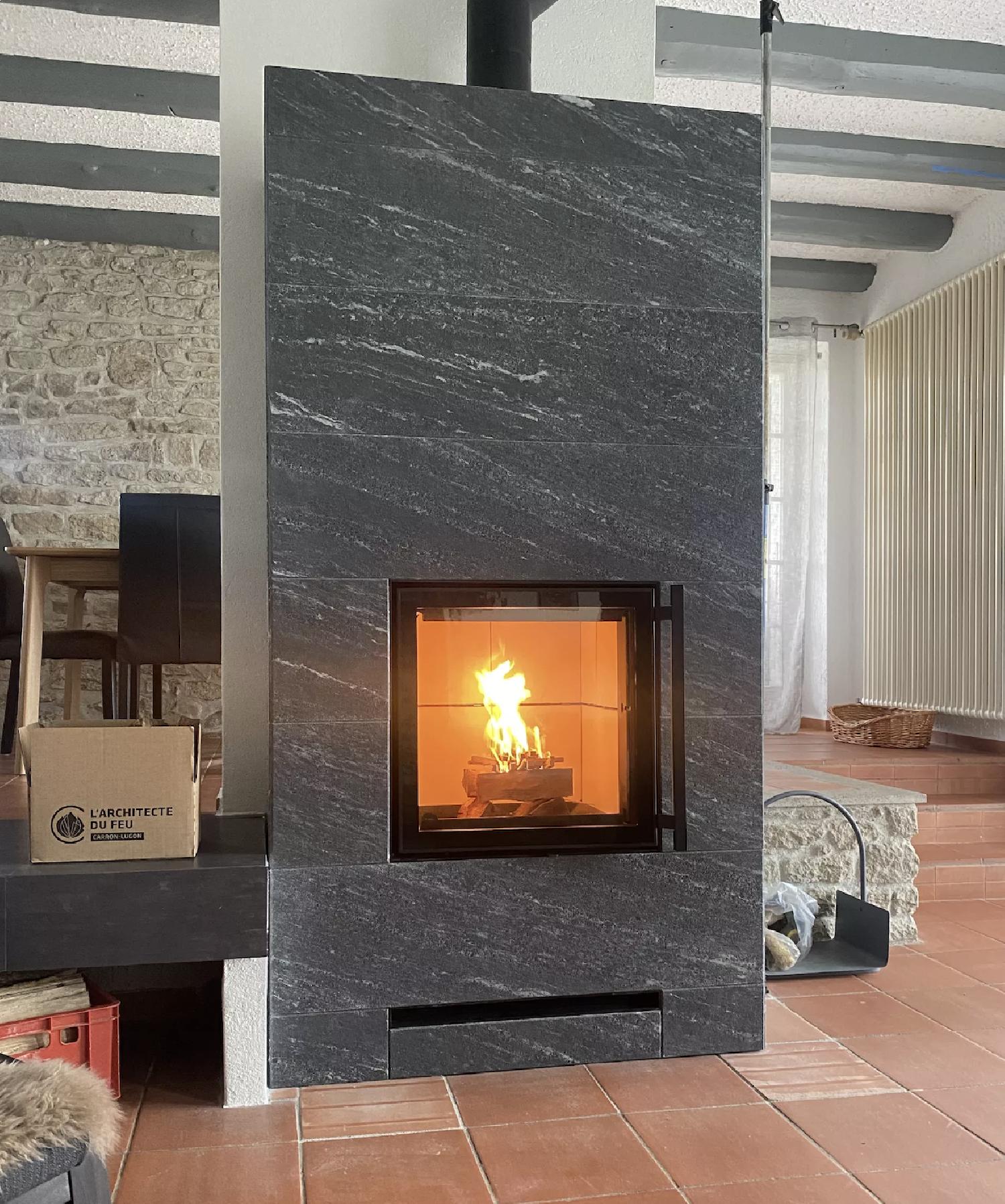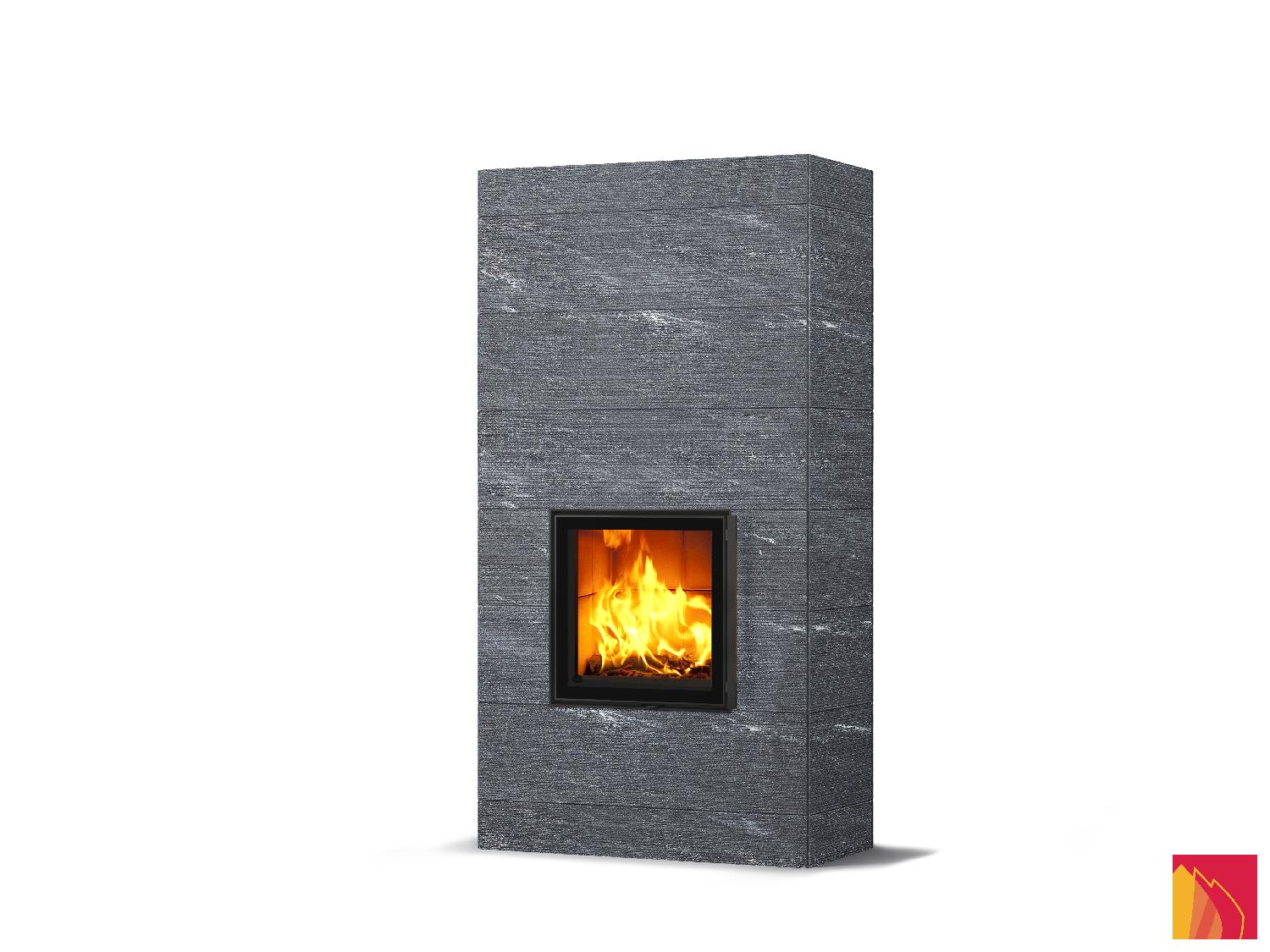 La finition de surface comprend des dalles en stéatite lisses, rainurées ou Grafia avec motifs découpés au jet d’eau.