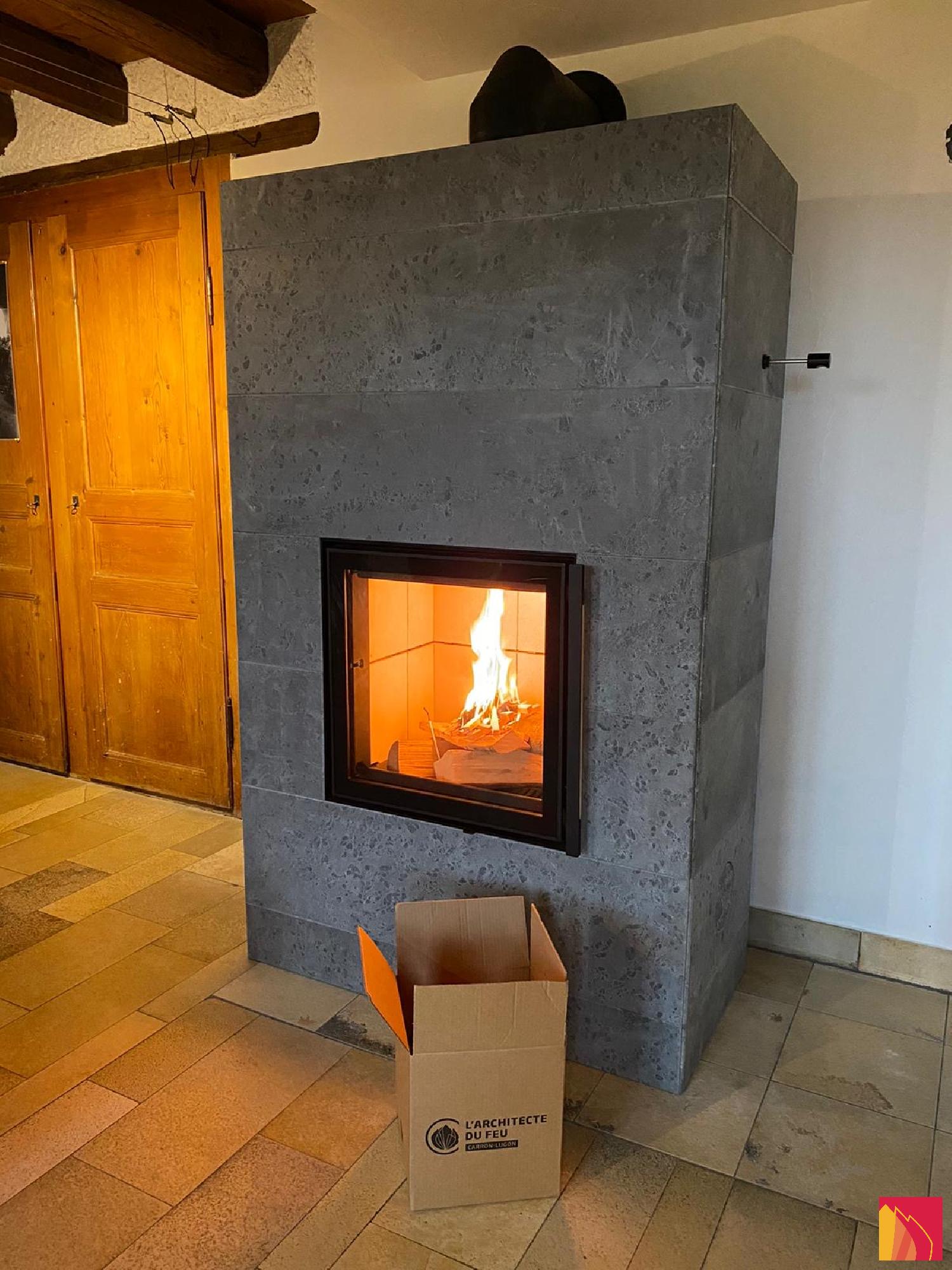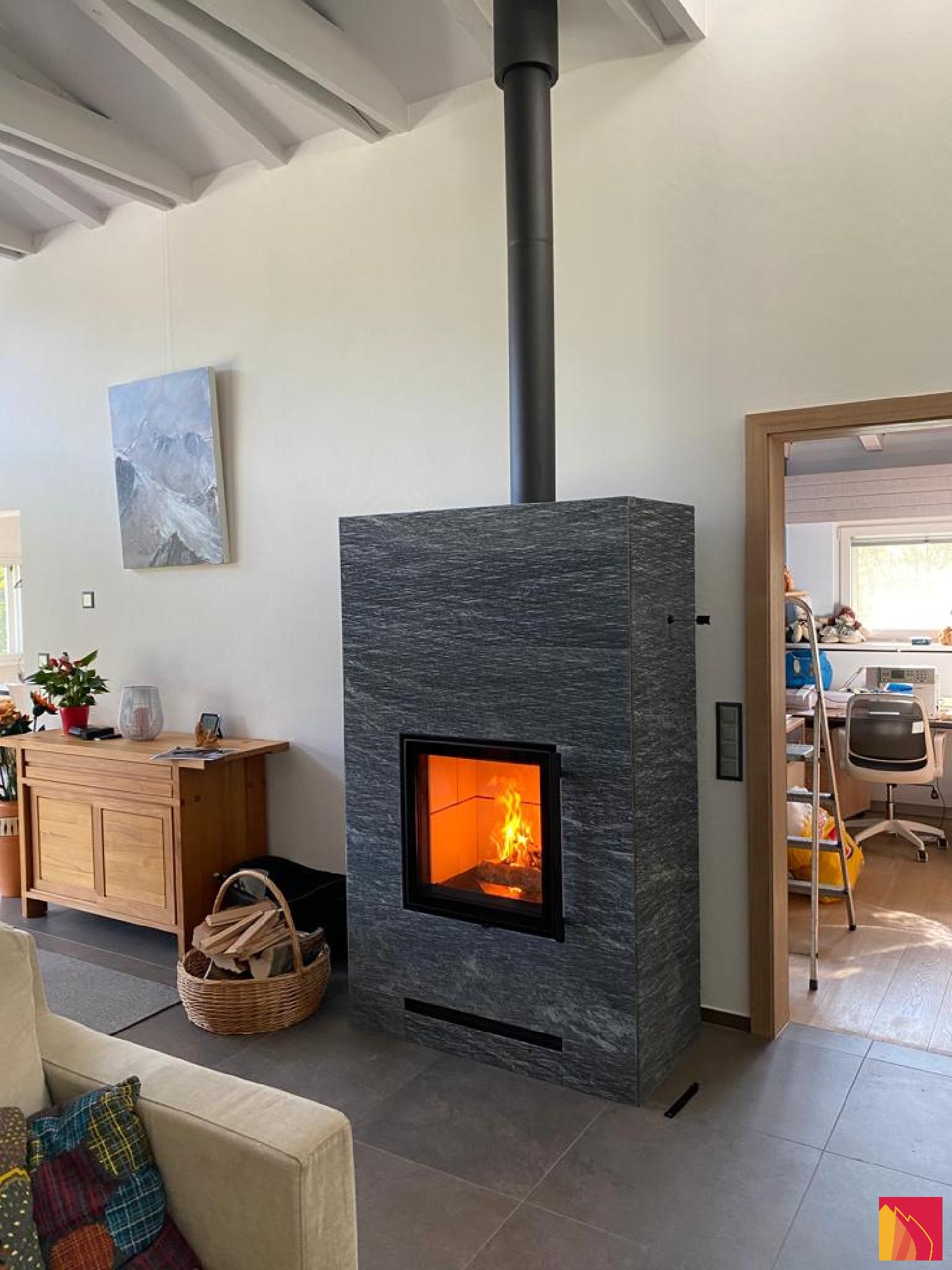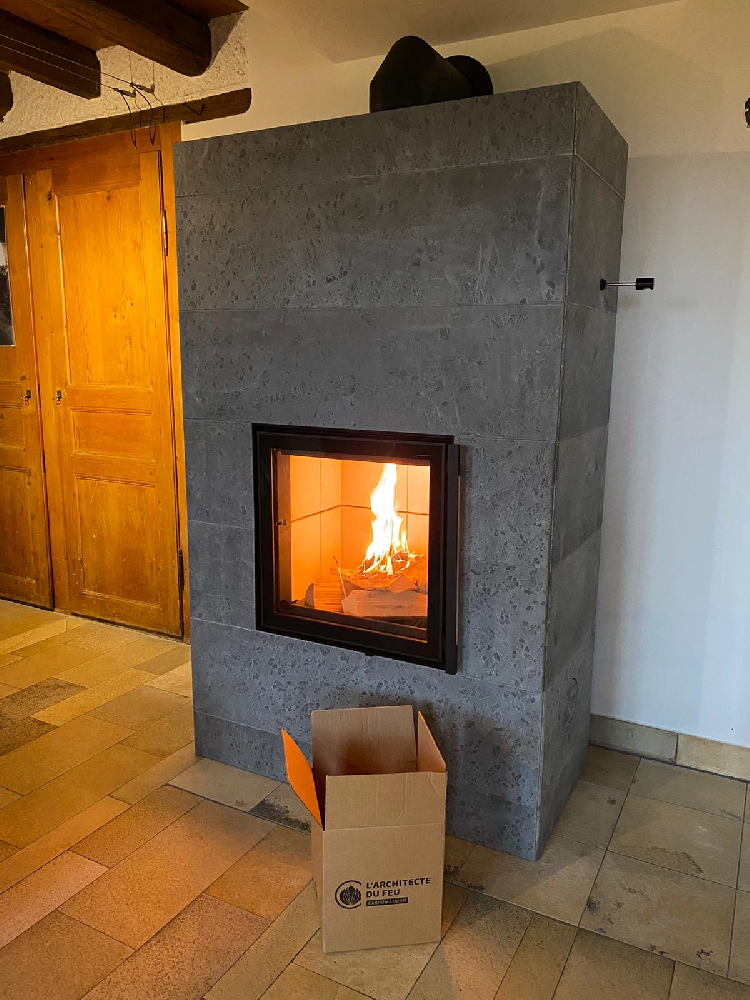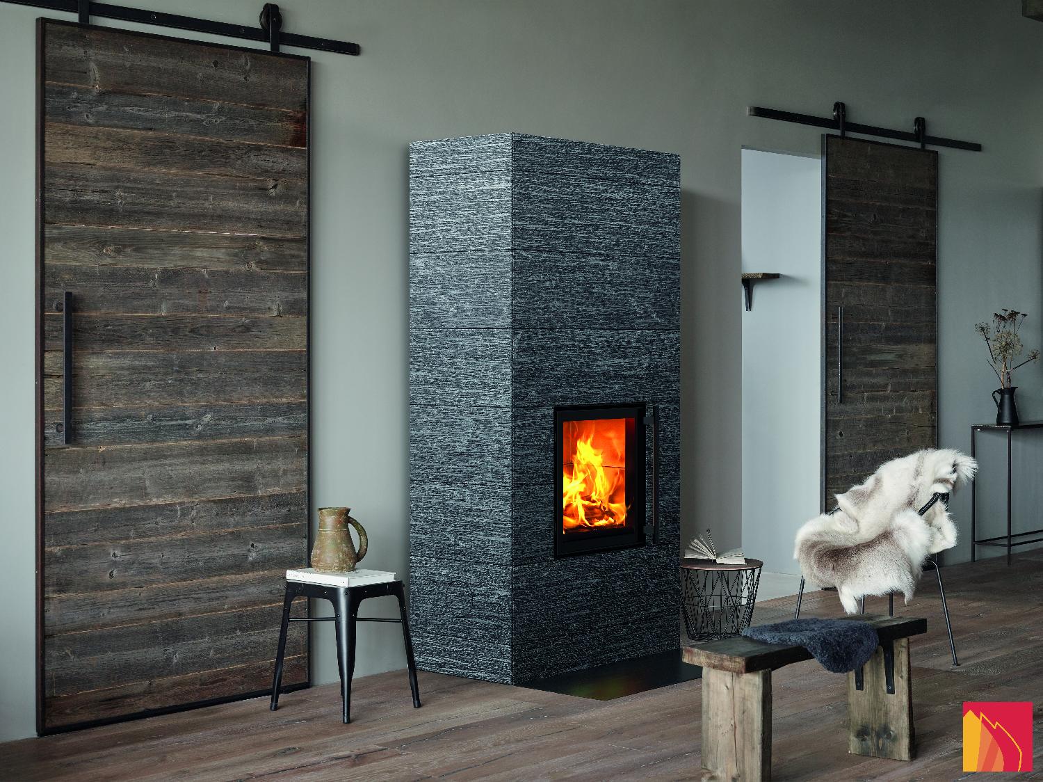 La finition de surface comprend des dalles en stéatite lisses, rainurées ou Grafia avec motifs découpés au jet d’eau.